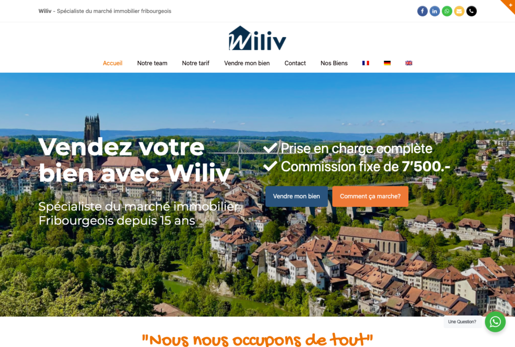 Wiliv fait profiter aux vendeurs/propriétaires de biens immobiliers de leur expérience du marché fribourgeois acquise au cours de ces 15 dernières années. Les frais de courtage sont réduits à 7’500.- CHF tout compris au lieu des 3% traditionnel que les propriétaires vendeurs doivent verser aux agences en cas de vente.